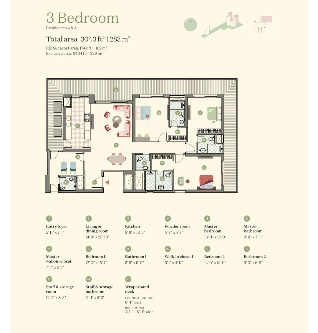 • Priced at 5.84 crore, this 2693 square feet home is situated on the 14th floor, offering a serene garden view and the