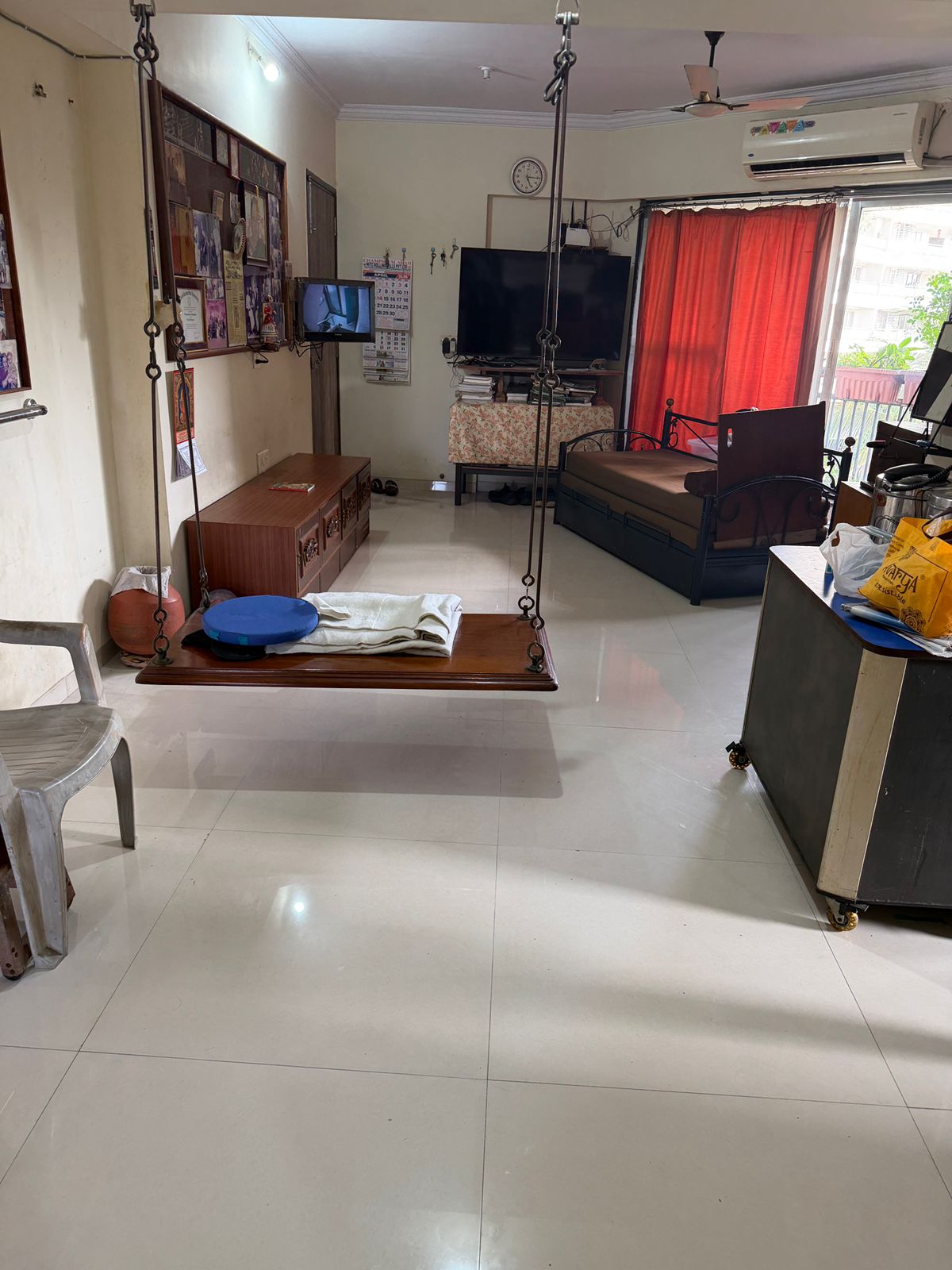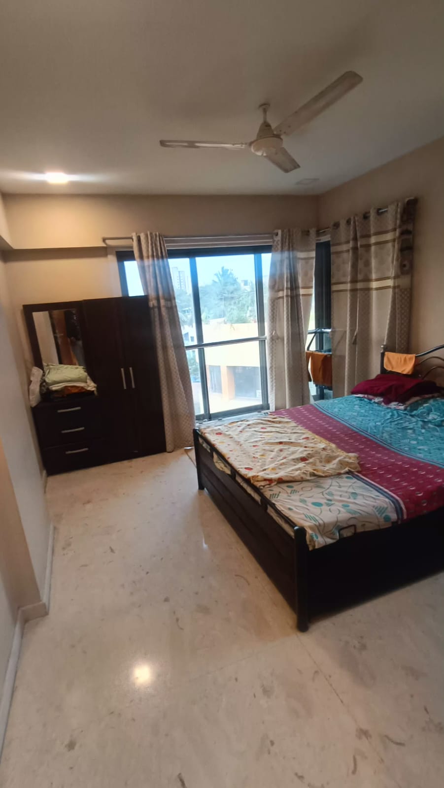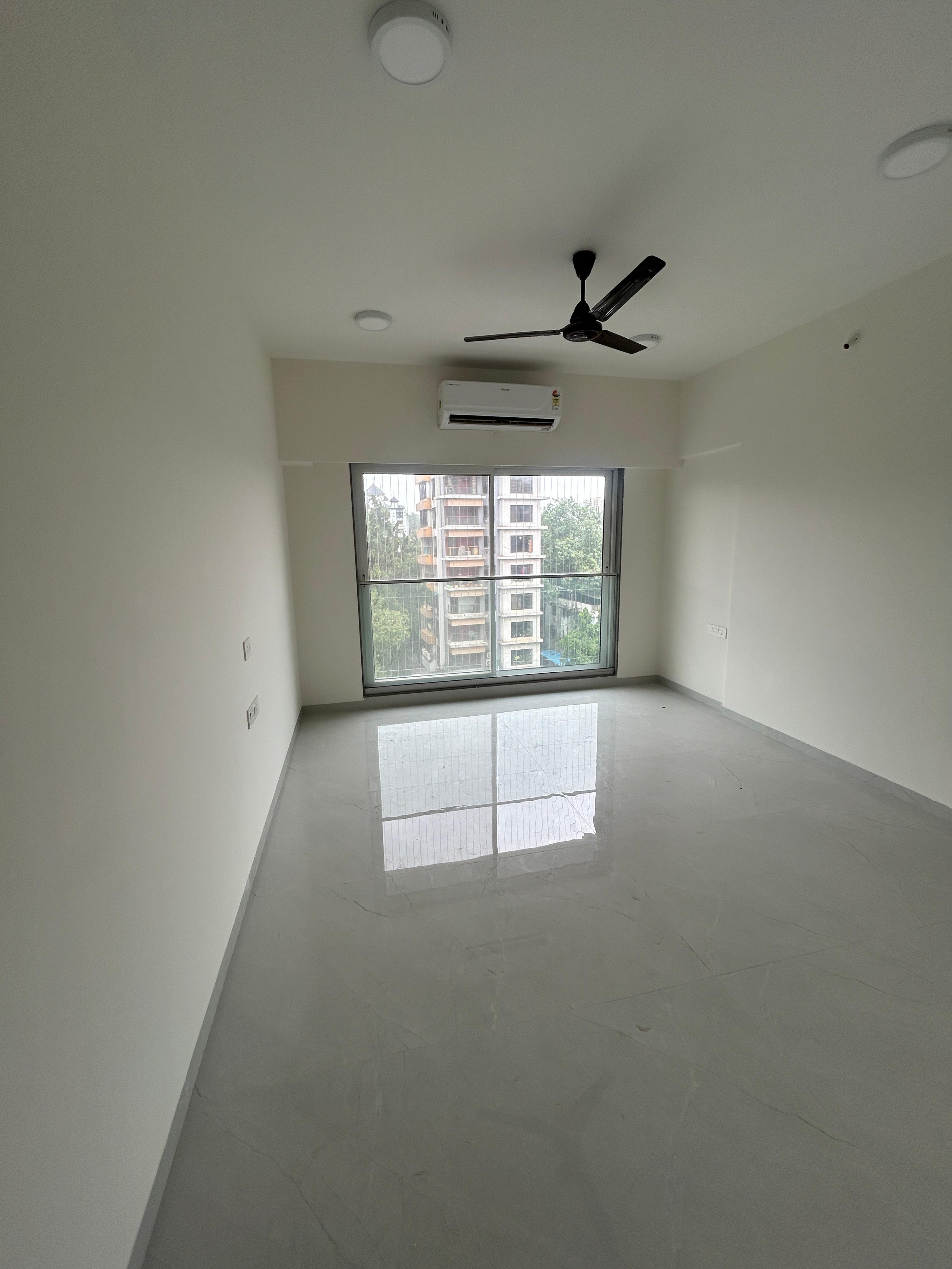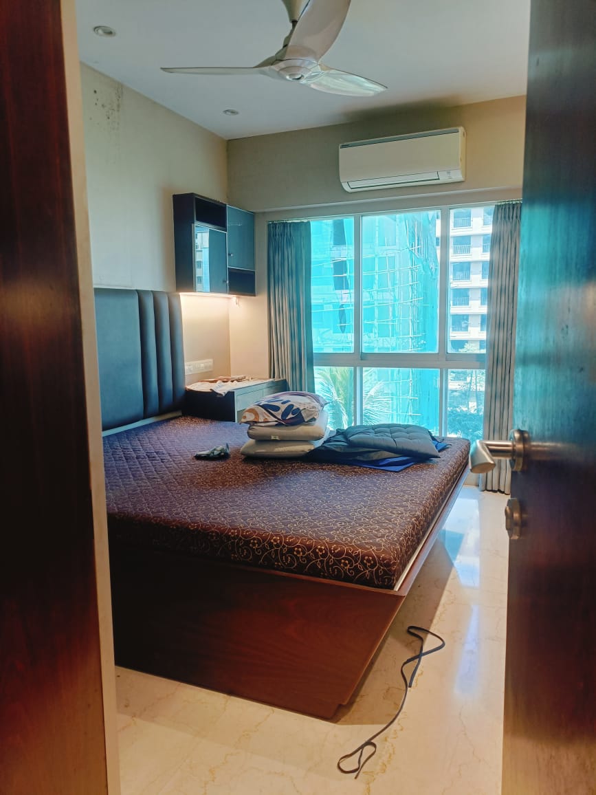 This furnished two-bedroom, two-bathroom Flats in Chembur, Mumbai, offers a comfortable living experience with a road view from the eighth floor.