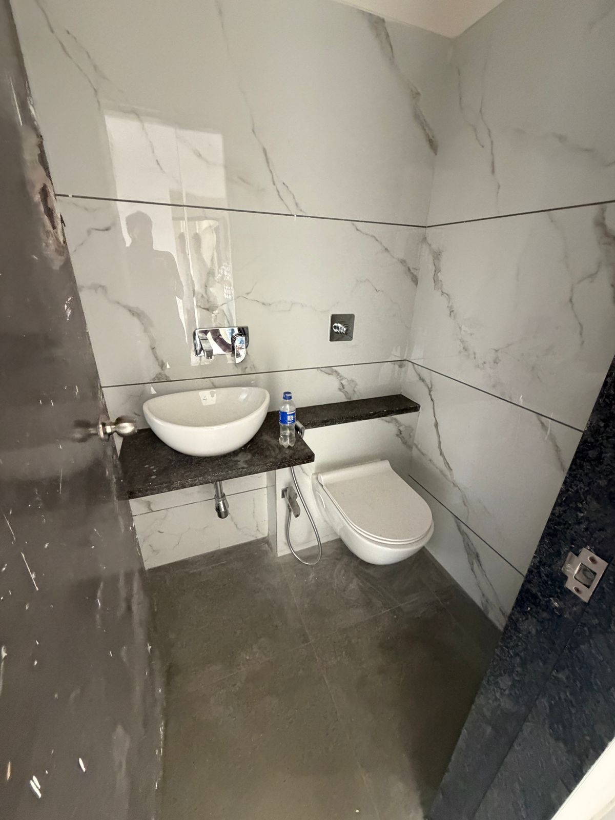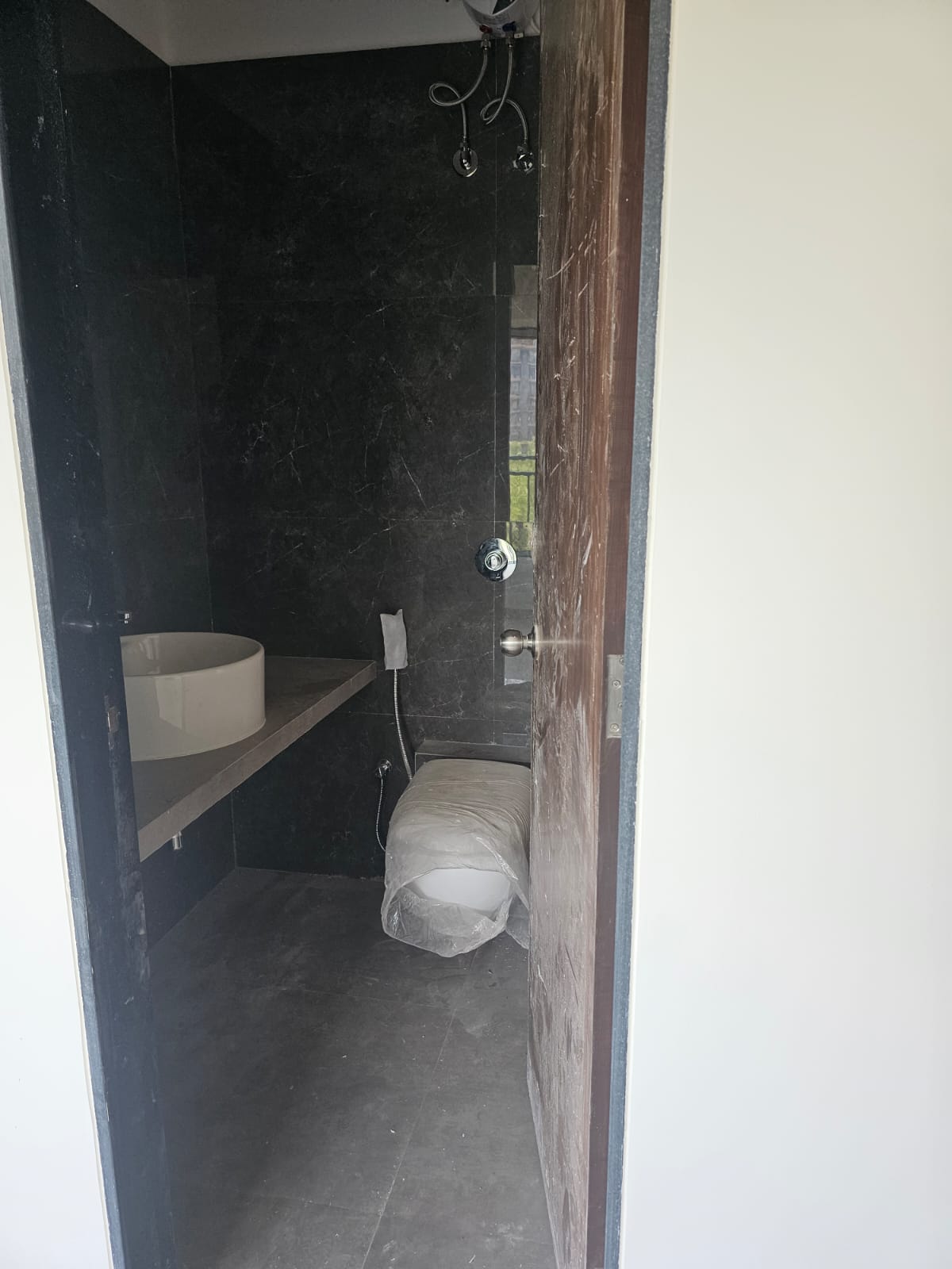 • This 480 square feet residence is situated on the third floor of the 15-story Concrete Sai Swayam project, offering a road view from its