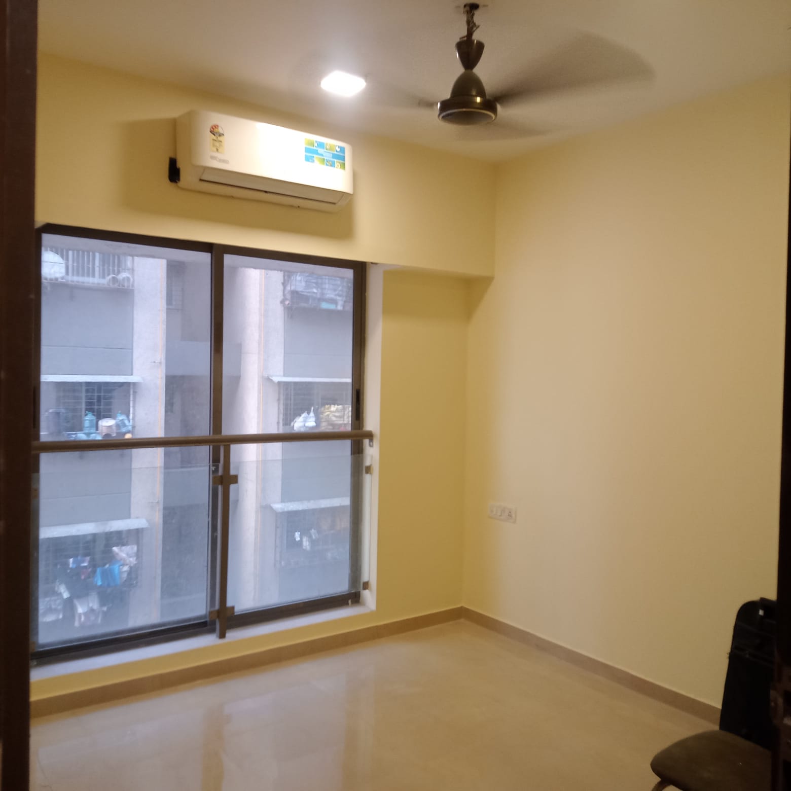 • This fifth-floor unit within the Gurukripa Building faces the road and provides essential amenities like a gymnasium,