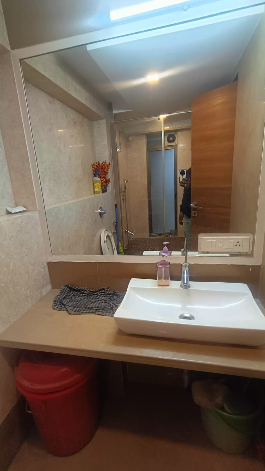 • Located on the 5th floor of the 15-story Sufalam Flats Chembur building, this semi-furnished unit offers a comfortable living space with a