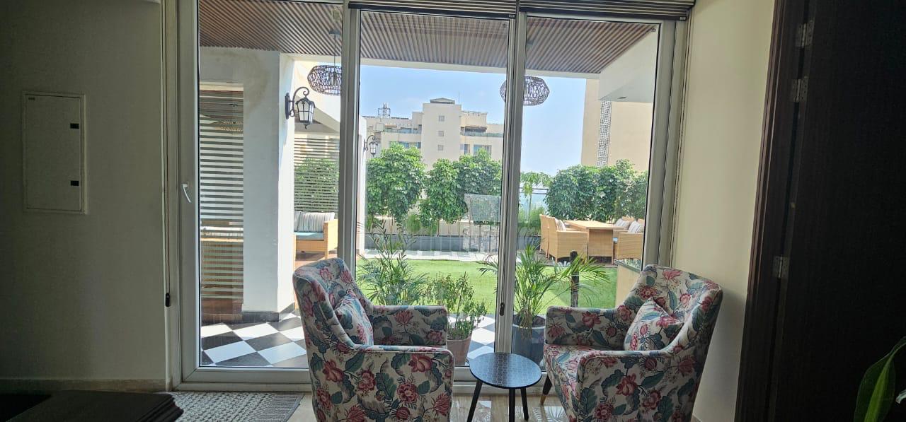 This semi-furnished 3.5 bedroom, 3 bathroom Flats in Sector 107 Noida offers 2500 square feet of living space with a park view from the 24th floor of the 28-story Prateek Edifice project.