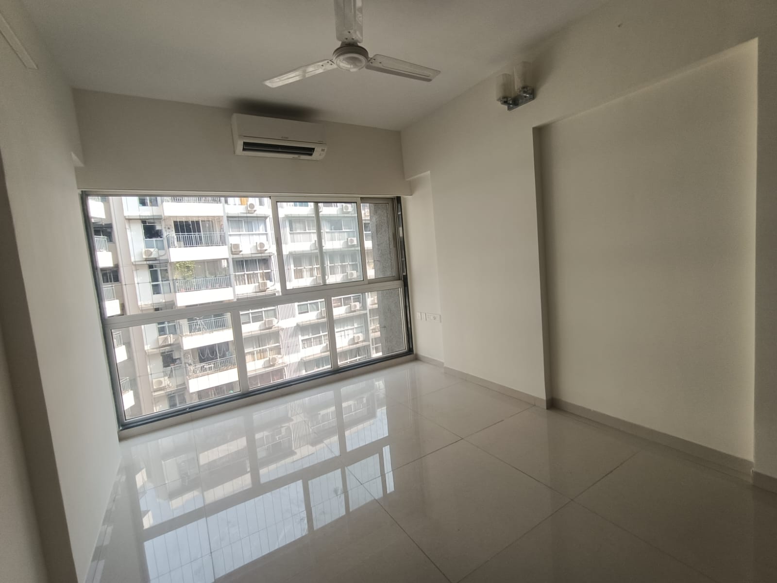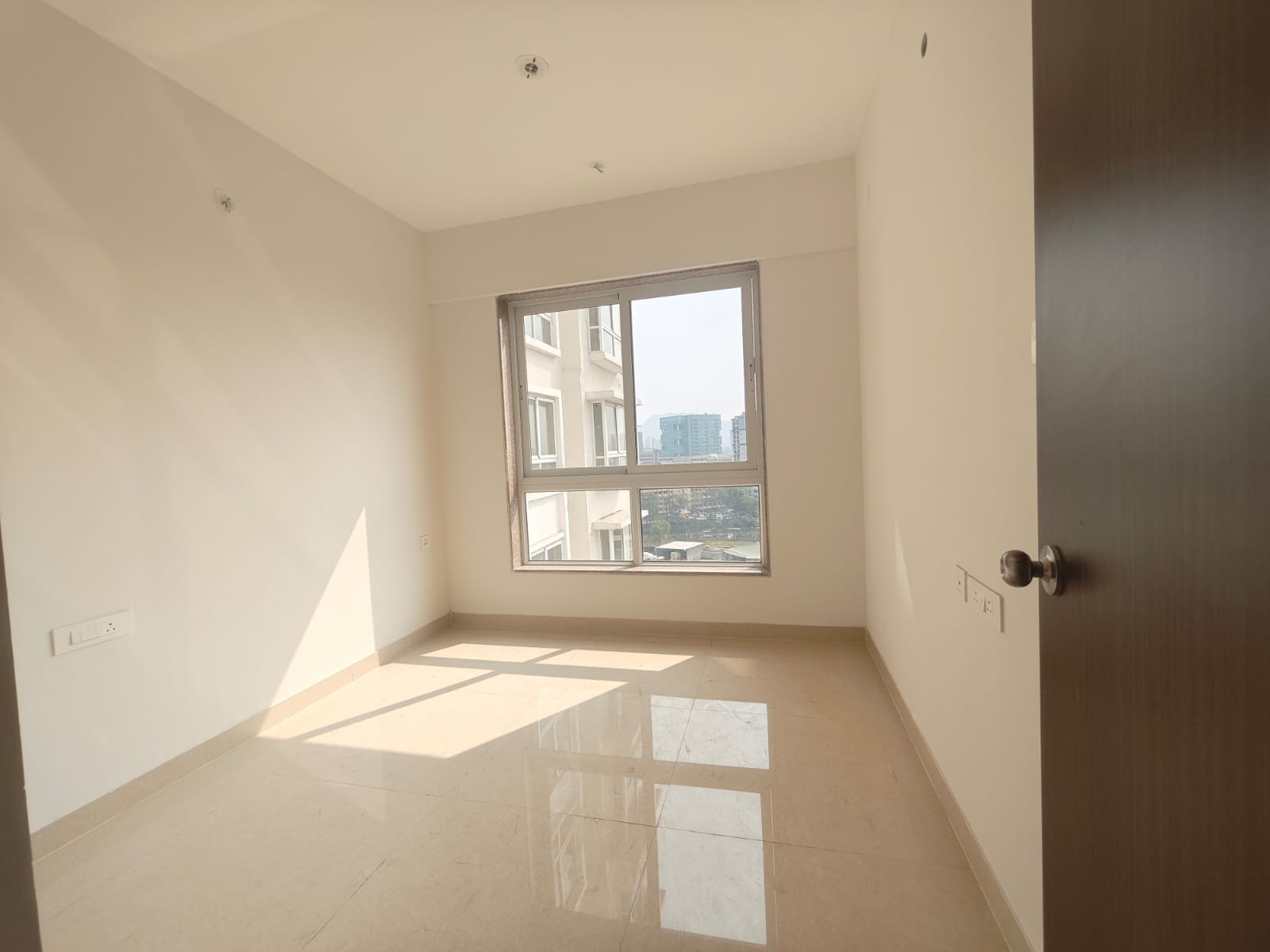 This unfurnished three-bedroom, three-bathroom Flats in Hubtown Rising City, Ghatkopar East, Mumbai, offers a park view from its 945 square feet of living space.