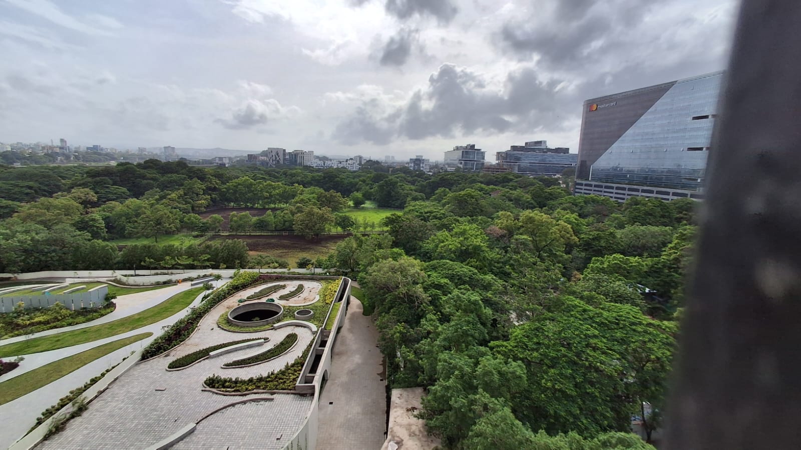A serene garden view awaits from the 4th floor of this semi-furnished 2-bedroom, 2-bathroom Flats in Koregaon Park, Pune.