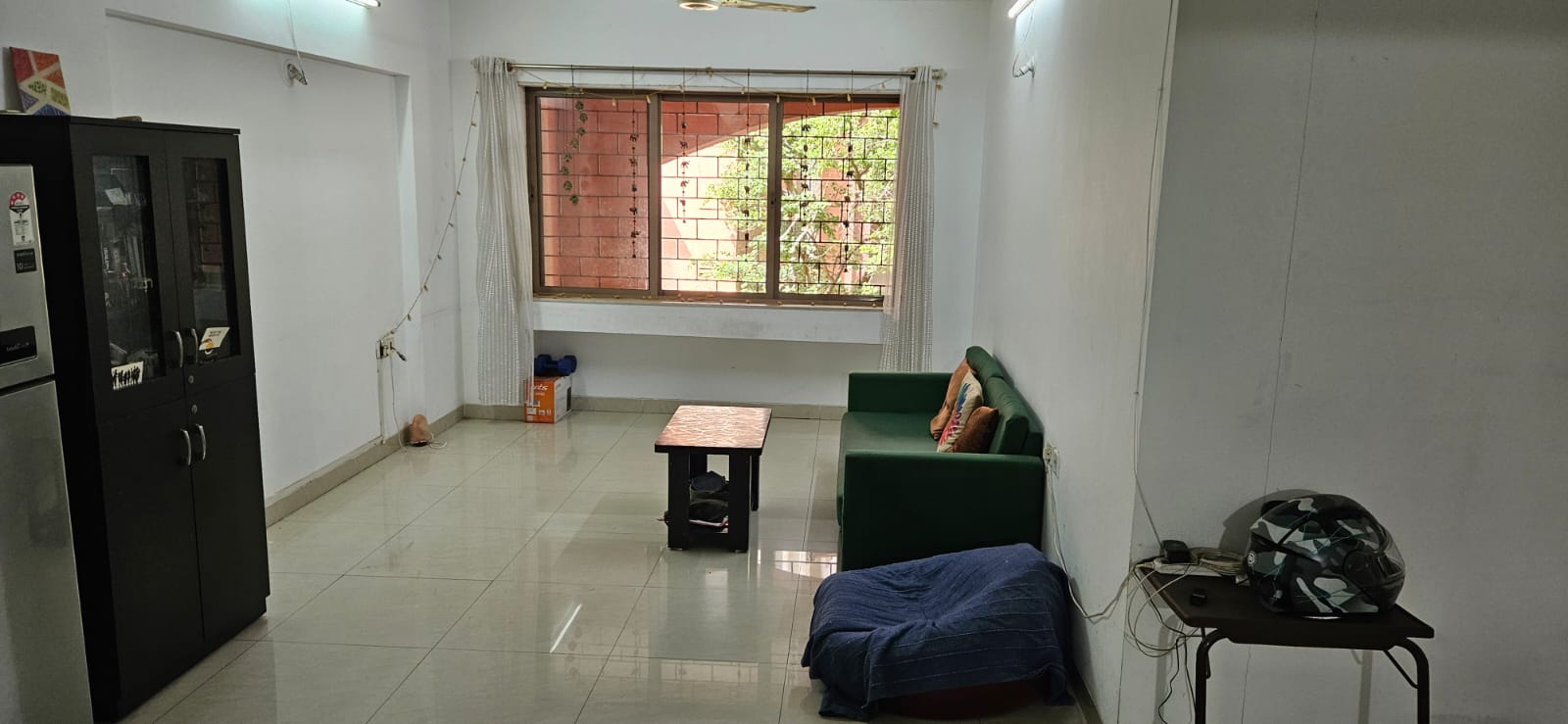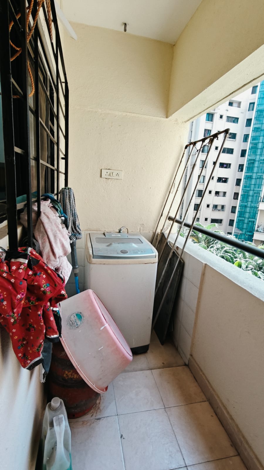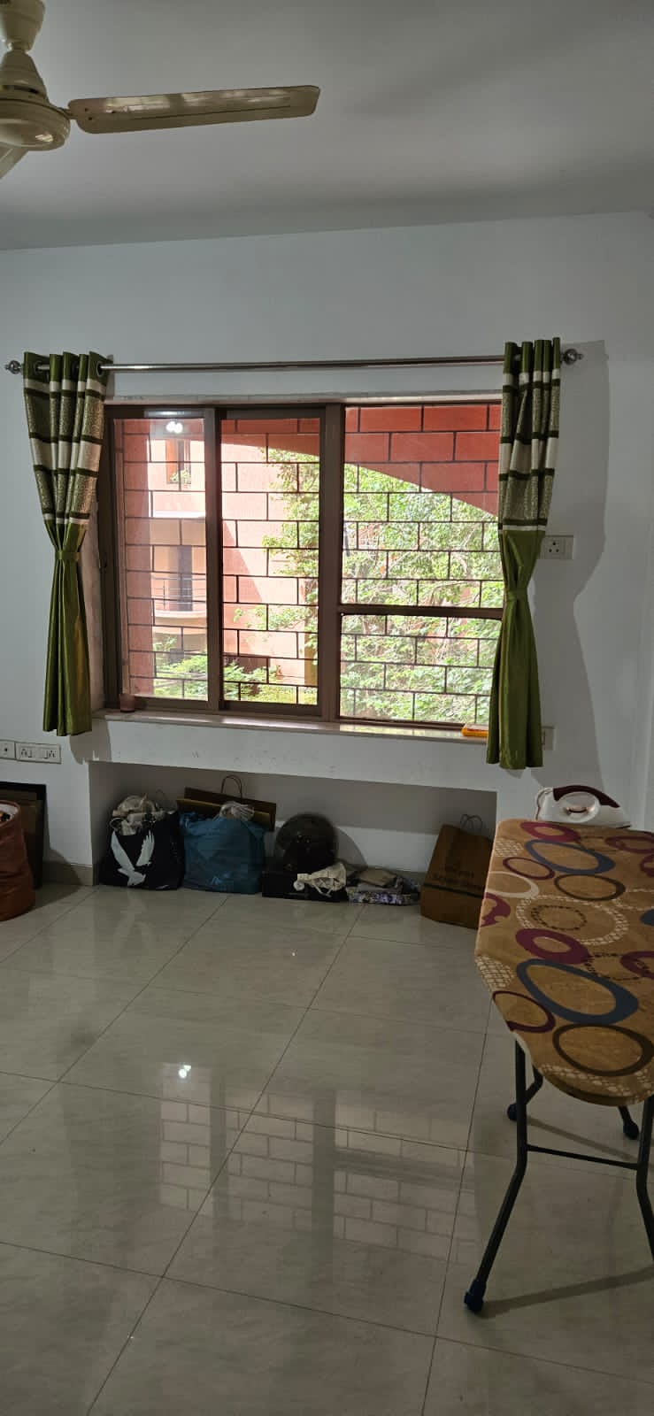 A quiet garden view awaits from the balcony of this 500 square feet, one-bedroom Flats located on the third floor of Naiknavare Trinity Court in Koregaon Park, Pune.