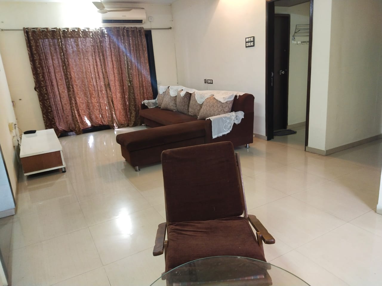 A furnished two-bedroom Flats with two bathrooms is available for rent on Ghodbunder Road in Thane.