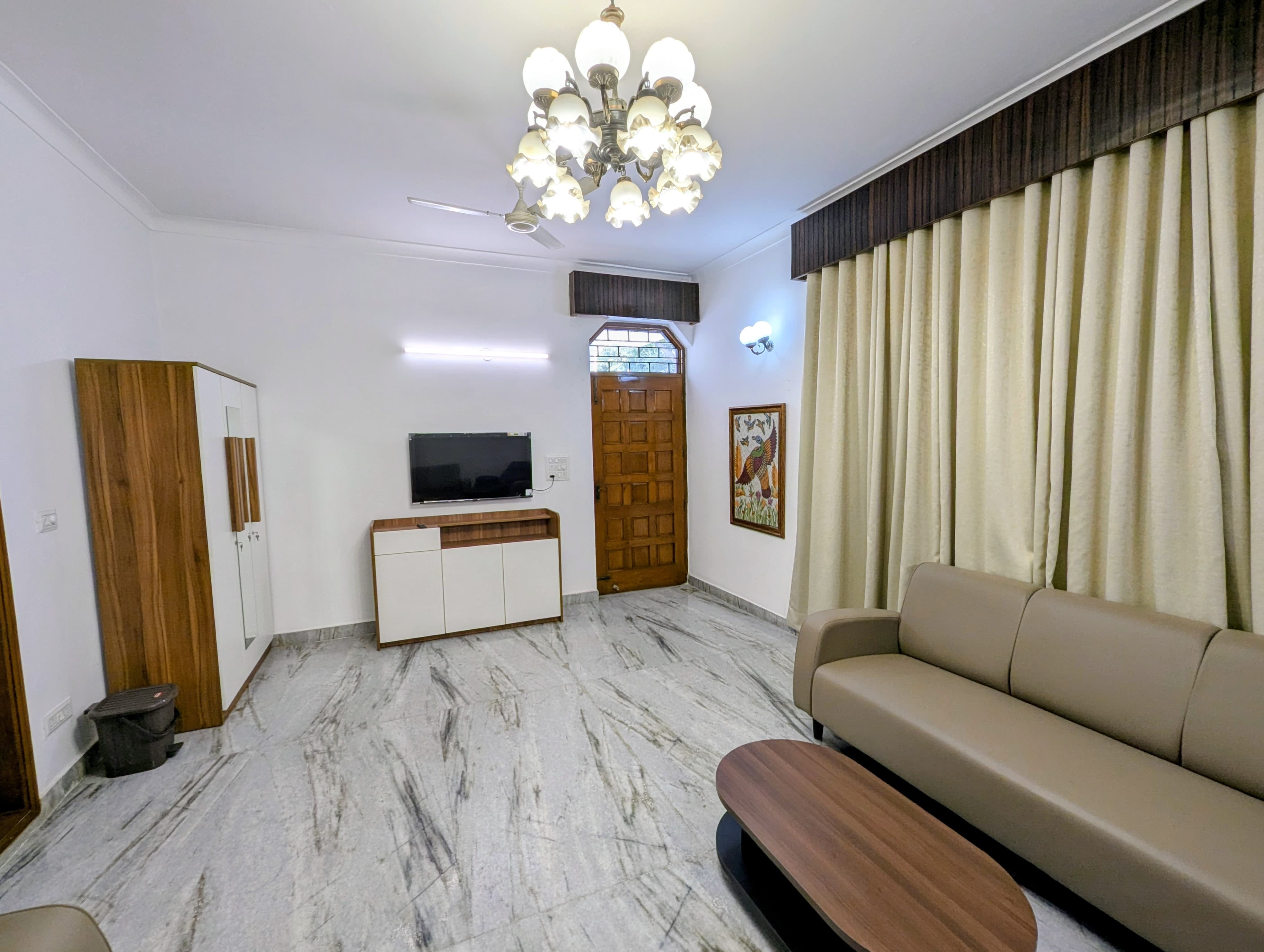 This furnished 3.5-bedroom, 3-bathroom builder floor in Sector 14, Faridabad, is ready for you to call home.
