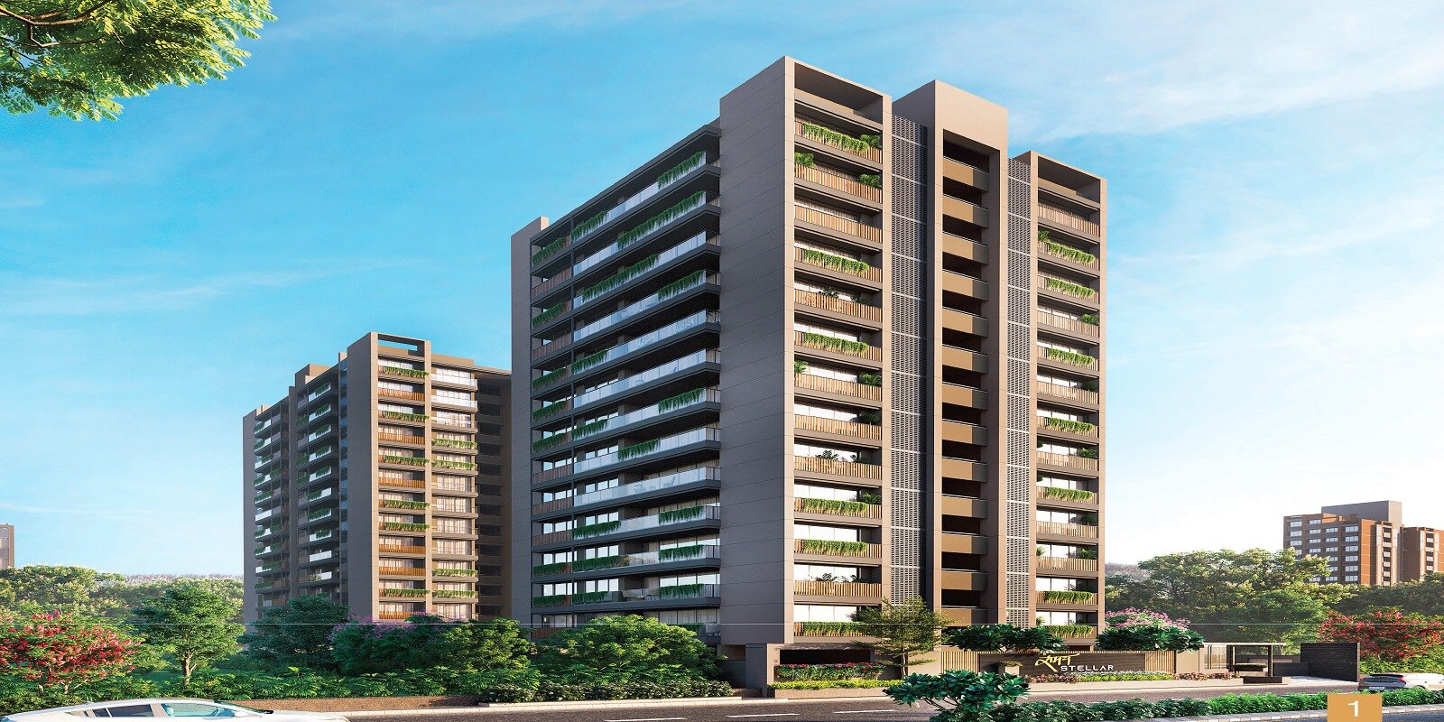 Krishna Samay Stellar in Koba is designed with two distinct blocks, Block A and Block B, offering multiple units within each. The development features a significant common plot and is strategically located with good road access.