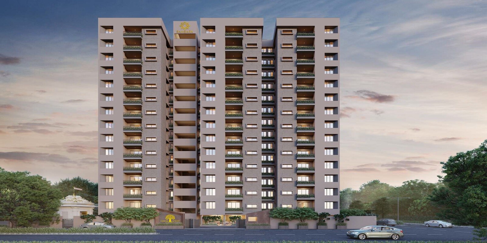 Rent in Samsara Kalpavriksh ranges from ₹ 15 K to ₹ 25 K with options available for 1 BHK, 1 BHK, 2 BHK, 2 BHK, 3 BHK.