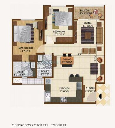 Brigade Northridge offers 2 to 3 BHK Flat From 1230 to 1880 Sq.Ft residential apartments with meticulously designed interiors and tailored flooring for each room. Most vitrified tiles are used in living rooms, staircases, kitchens, and other areas, while laminated wooden flooring is used in master bedrooms.
