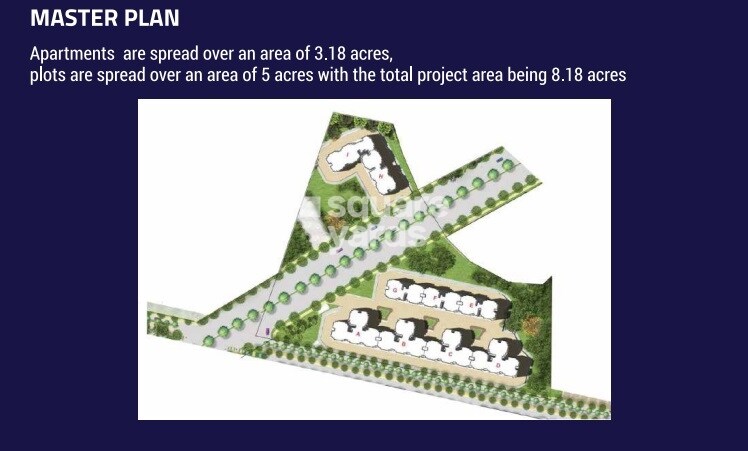 The Emprasa Commercial master plan outlines a development spanning a total area of 8.18 acres. This comprises 3.18 acres dedicated to apartments and 5 acres designated for plots.