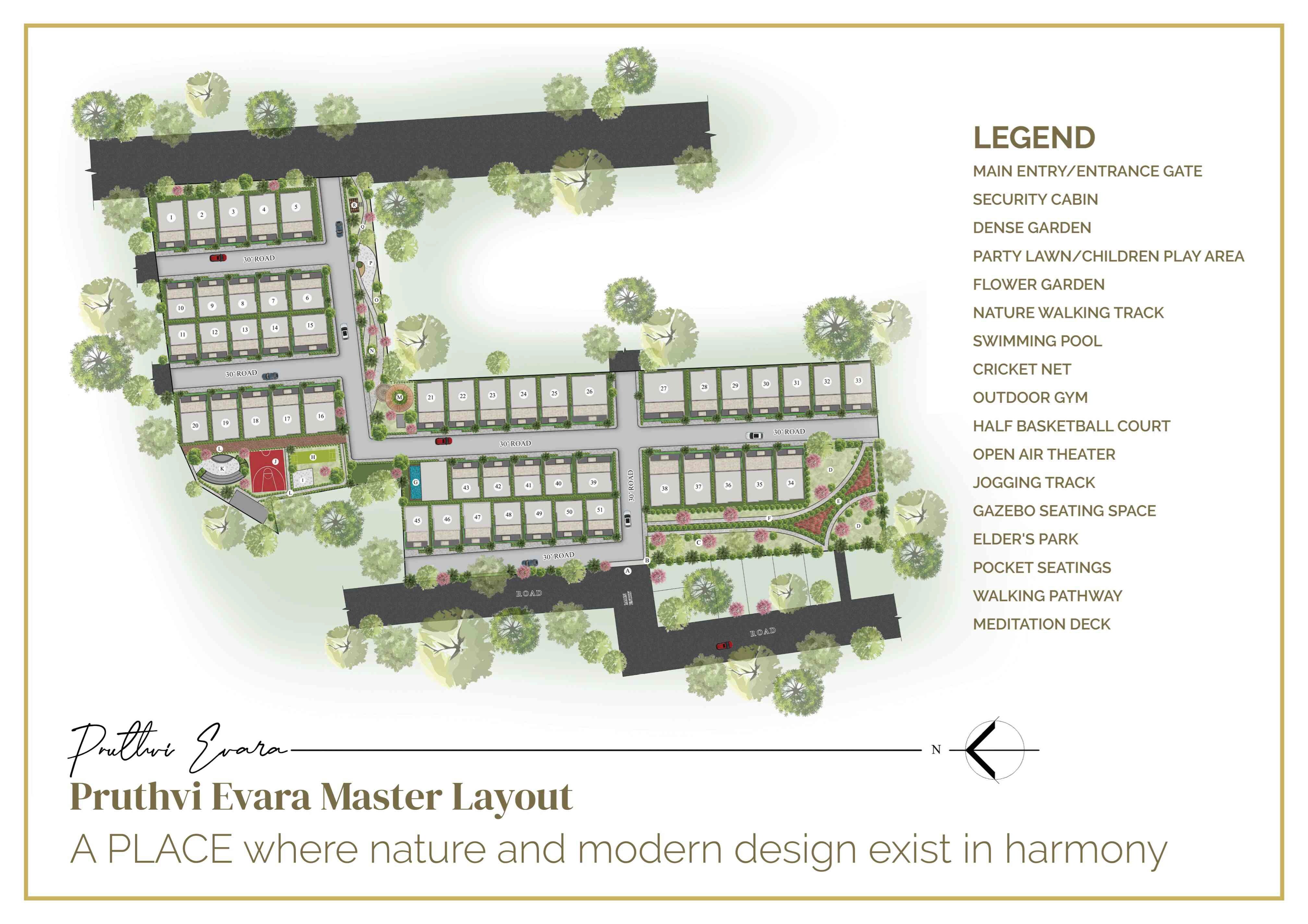 Pruthvi Evara is a planned residential community, located in Sarjapur, featuring 49 individual plots within its master layout.
