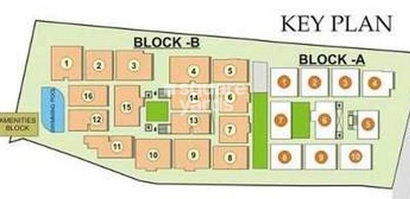 The master plan for Samruddhi Uplands illustrates a property divided into two main residential sections, Block A and Block B, encompassing a total of approximately 25 units. Block B contains 15 numbered units (1-5, 7-16), while Block A comprises 10 numbered units. The layout includes specific areas for community amenities, designed to enhance the living experience within these two blocks.