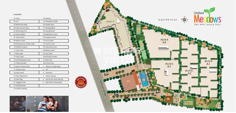 United Meadows offers 2 and 3 BHK Luxury flats located in Kundalahalli. This project includes five residential blocks, labeled A1, A2, A3, A4, and B.