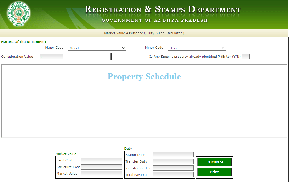 - Visit the link registration.ap.gov.in/APMV_Client/index.jsp for calculating the duty fees of IGRS AP portal.