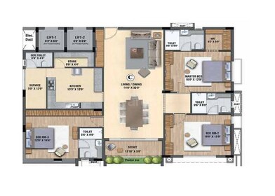 | Master Bedroom-Flooring | Vitrified Tiles |