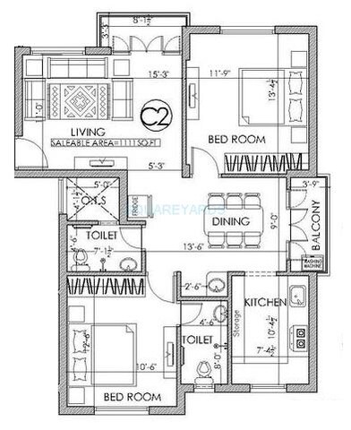 | 2 BHK Apartment | 1110 | 1.28 Cr |