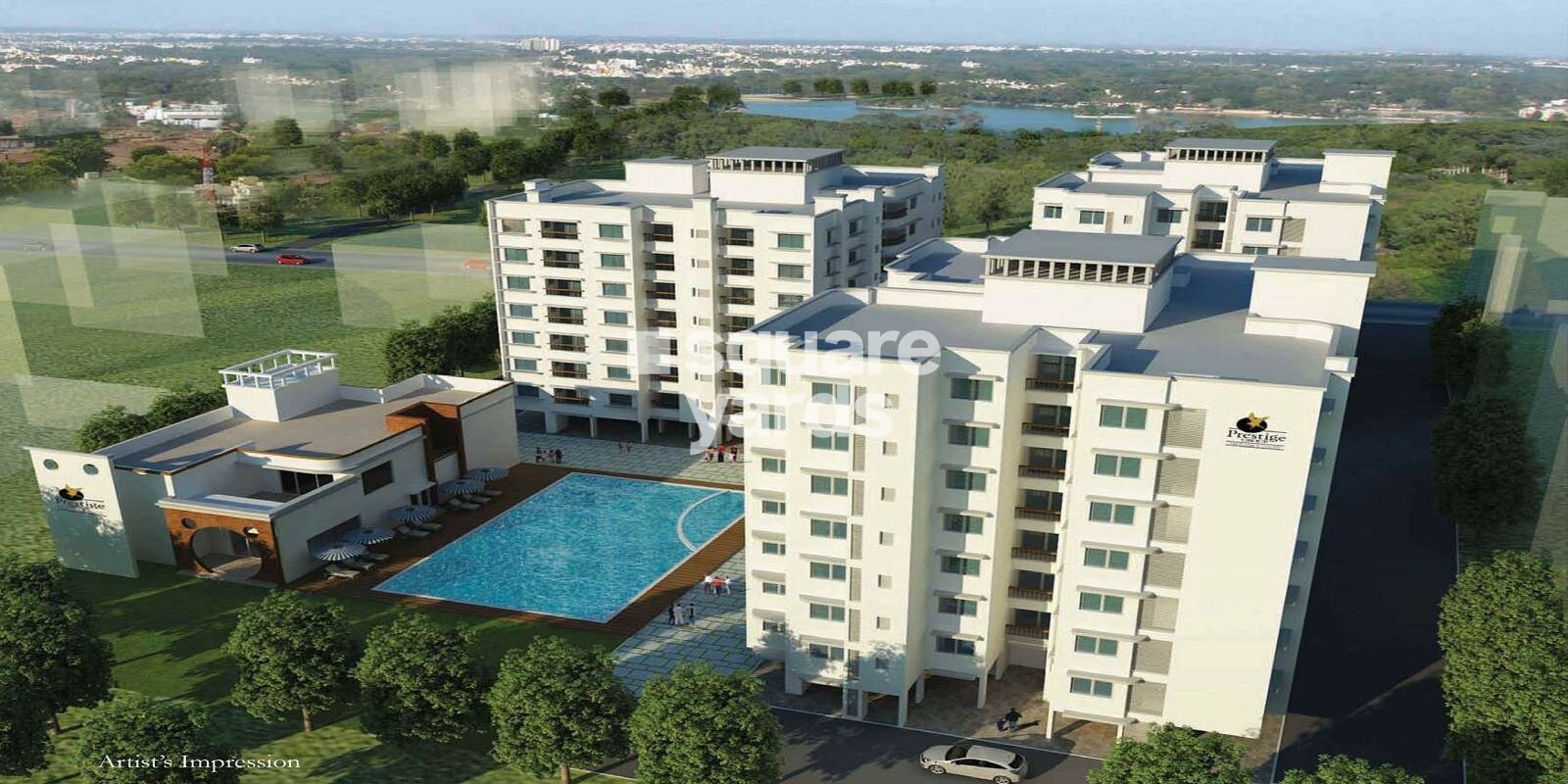 Prestige Downtown is a residential development featuring three towers, Tower 01, Tower 02, and Tower 03. Each tower comprises a basement, a stilt level, and seven residential floors.
