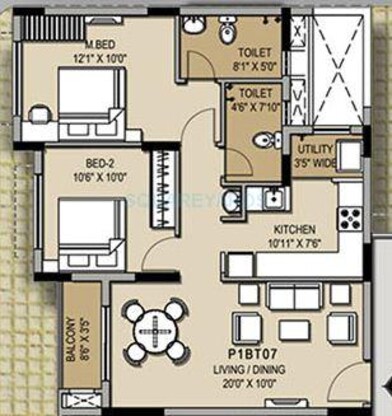 The project offers 2 BHK and 3 BHK apartments, with various sizes ranging from 956 to 1281 Sq. Ft.