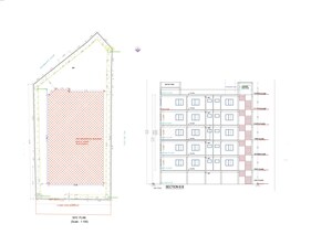 The plot is designated for residential use, featuring a single residential building. The specific plot area isn't provided, but the building occupies a significant portion of the centrally hatched area shown on the site plan.
