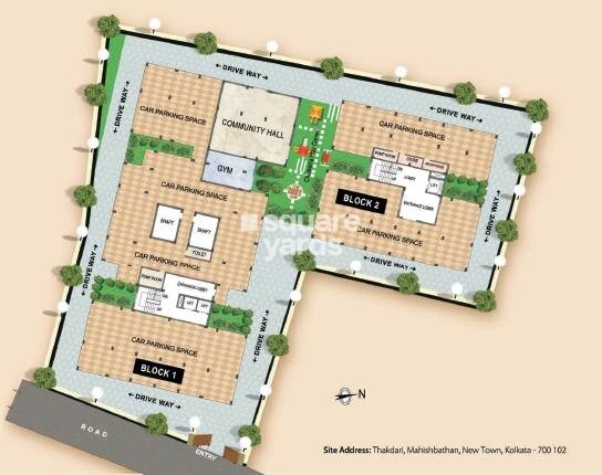 The Gurukul Grande project, situated in New Town, features two distinct residential blocks, Block 1 and Block 2, within its master plan.