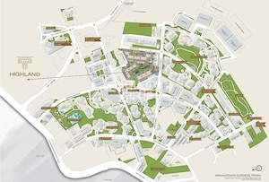 Hiranandani Gardens, Powai presents a comprehensive township master plan, featuring a mix of residential, commercial, educational, and recreational facilities. The master plan does not specify the total land area, number of units, or project launch and completion dates, but it depicts a fully integrated development with numerous buildings and amenities. Highland, a residential offering, is centrally located within this extensive layout.