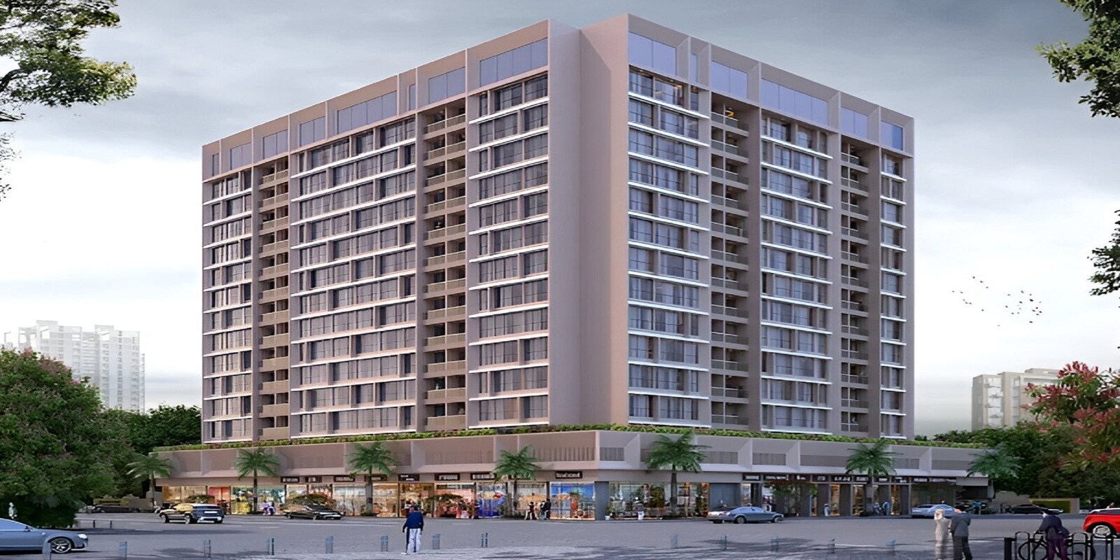 Akshar Estrella offers 1 BHK apartments with an area of 373 sq. ft., as well as 2 BHK apartments available in sizes of 560 sq. ft. and 581 sq. ft.