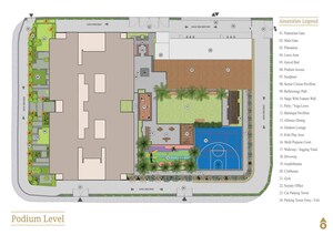 Kolte Patil La Vita is a residential project in Sector 2 Vashi. This plan focuses on the podium level, which integrates various amenities around a central building complex. While details on total land area or unit count aren't shown here, you can see a dedicated 'Car Parking Tower' and the various recreational spaces provided for residents.