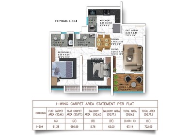 | Living Area-Flooring | Vitrified Tiles |