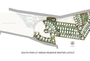 This master plan presents the layout for South Park at Amoda Reserve. It details a planned residential community within the broader Amoda Reserve project. Specifics regarding total land area, exact number of units, or project launch and completion dates are not provided within this master layout plan.