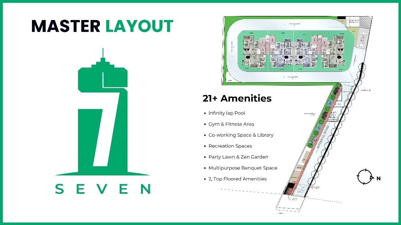 This is the master plan for Virkar Seven, located in Baner. While specific project launch and completion dates aren't detailed on the plan, nor are total unit or tower counts, the layout provides a clear overview of the residential development.