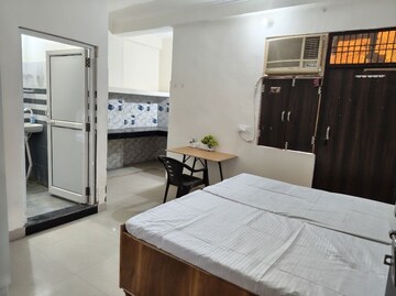 This furnished one room kitchen builder floor in Sector 44, Noida, is available for rent, offering a practical living solution.The property is situated on the first floor of a four-story building and comes with a road view, providing a sense of openness.It includes one bathroom and one dedicated parking space, adding to its convenience.The builder floor is less than one