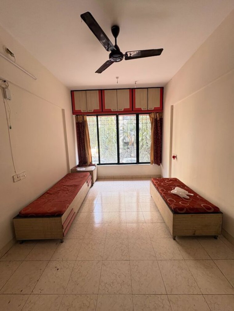 This semi-furnished one-bedroom apartment at Rajnigandha CHS Vasant Vihar in Thane offers a comfortable living space of 424 square feet on the first floor of a seven-story building.