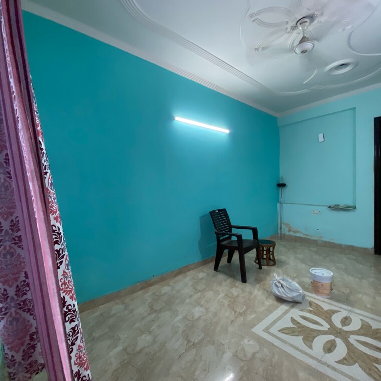 This unfurnished one-bedroom, one-bathroom builder floor in Delhi Chattarpur locality is available for rent at 13 thousand per month, offering 490 square feet of living space on the first floor of a two-story building.