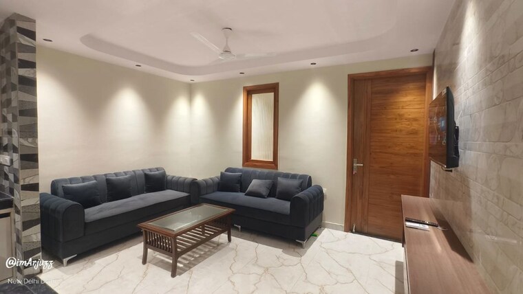 This furnished one-bedroom, one-bathroom builder floor in Lajpat Nagar, Delhi, is available for rent at 35 thousand, offering 1000 square feet of well-ventilated living space on the first floor of a three-story building.