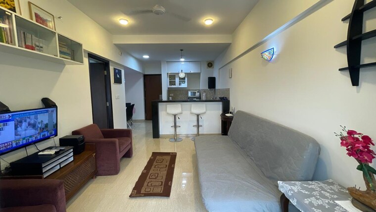 Here is a furnished one-bedroom, one-bathroom apartment available for rent in Gahunje, Pune, offering a comfortable 711 square feet of living space with a lovely garden view from the 11th floor of the 21-story Lodha Belmondo.