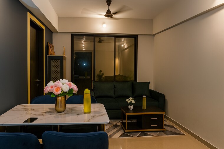 This unfurnished one-bedroom, one-bathroom apartment within Puranik City is available for rent at 15,999 per month, offering 447 square feet of well-designed living space.