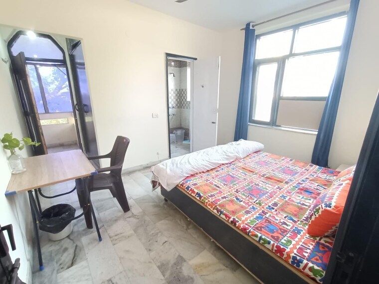 This furnished 1 RK apartment in Lajpat Nagar I, Delhi, presents a practical living option for individuals or small families.