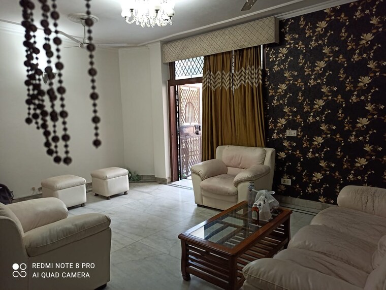 Embrace city living with this bright, furnished two-bedroom, two-bathroom builder floor in Kalkaji, Delhi, available for rent at 46 thousand per month.