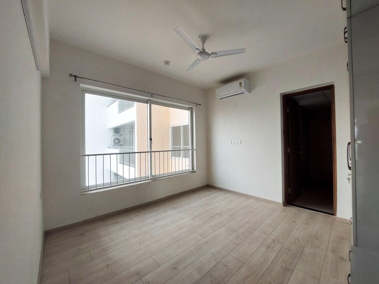 This semi-furnished, two-bedroom, two-bathroom apartment in Shapoorji Pallonji Joyville Phase 3, located on the 9th floor, provides a peaceful garden view and is available for 38 thousand per month.