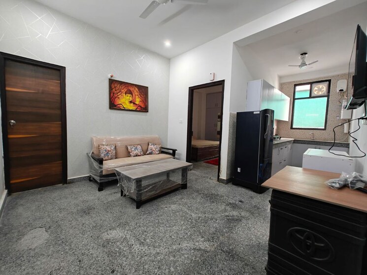 Enjoy a park view from this furnished two-bedroom, two-bathroom builder floor in Gurgaon`s Sector 45.