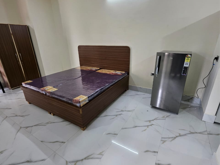 Living in a secure, gated community in Delhi Chattarpur neighborhood can be yours with this semi-furnished 2-bedroom, 2-bathroom builder floor available for rent.