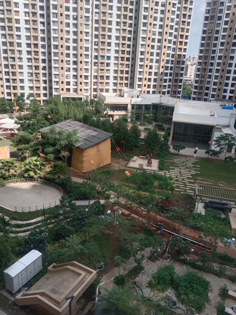 - Located on the 12th floor of the 23-story Sunteck Maxxworld project, this semi-furnished 570 square feet residence offers a pleasant road view from its balcony.
