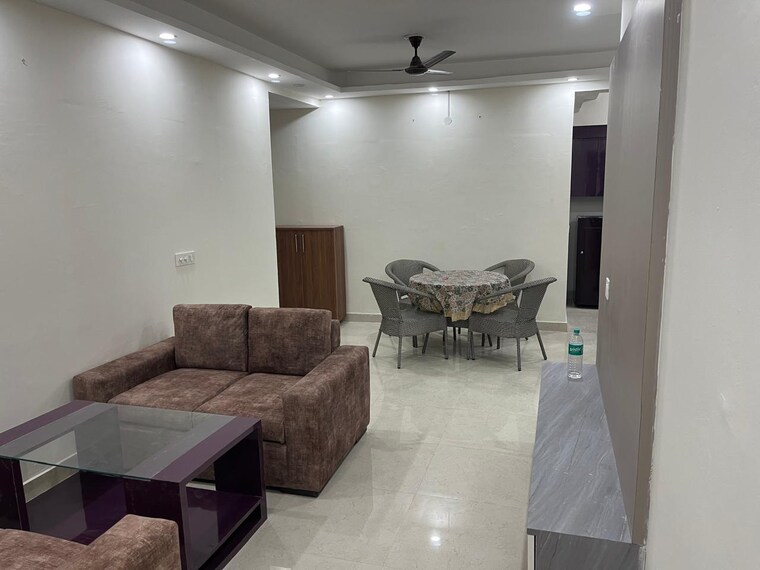 Live in a fully renovated, furnished two-bedroom, two-bathroom apartment on the fourth floor of Signature Global Prime in Gurgaon.