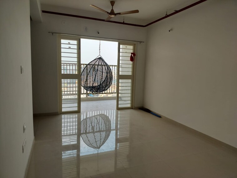 Bright and airy, this unfurnished two-bedroom, two-bathroom apartment in Pune Kharadi locality offers a refreshing garden view from its seventh-floor position in the Goel Ganga Altus project.