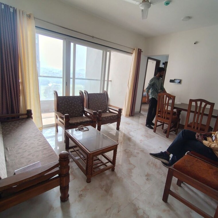 This semi-furnished two-bedroom, two-bathroom apartment in Krishna Amarillo, Hinjewadi, Pune, is available for rent at 35 thousand per month.