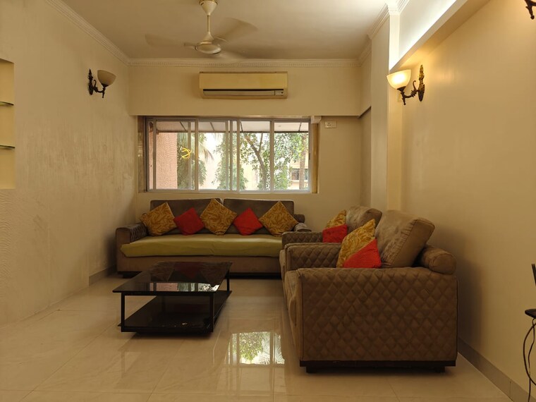Centrally located in Mumbai Powai area within the Jal Vayu Vihar Apartments complex, this semi-furnished two-bedroom, two-bathroom apartment on the third floor is available for rent at 70 thousand per month.