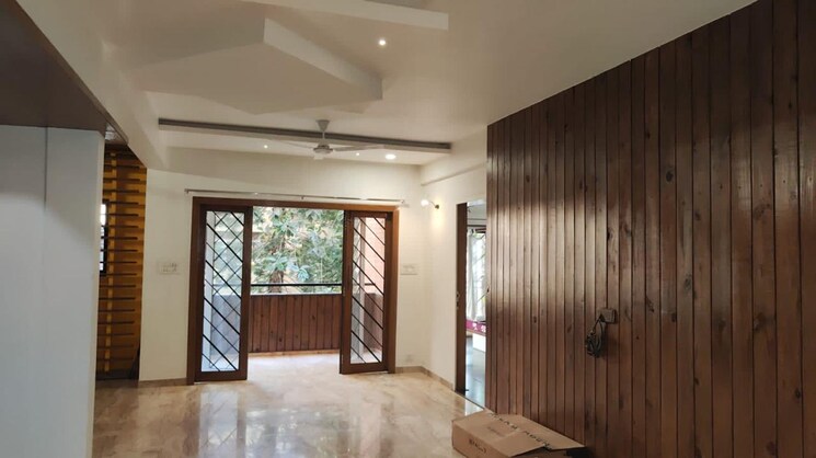 This furnished two-bedroom, two-bathroom apartment in Pune Koregaon Park offers a luxurious lifestyle within the Clover Trump project, available for rent at 50,000 per month.