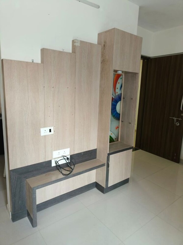 This furnished two-bedroom, two-bathroom apartment in Ramaa Heritaige, Undri, Pune, offers a comfortable living space spanning 970 square feet, with a pleasant garden view from the fifth floor.