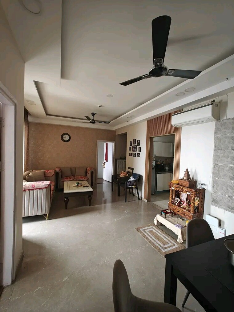 This furnished two-bedroom, two-bathroom apartment in Chattarpur, Delhi, offers a secure and luxurious lifestyle within a gated community.